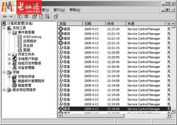 在Windows2000、Windows XP操作系统中有一位系统运行状况的忠实记录者,从开机、运行到关机过程中发生的每一个事件都将被记录下来,它就是“事件查看器”。用户可以利用这个系统维护工具,收集有关硬件、软件、系统问题方面的信息,并监视系统安全事件,将系统和其他应用程序运行中错误或警告事件记录下来,便于诊断和纠正系统发生的错误和问题。下面通过几个例子来讲解“事件查看器”的实际应用。